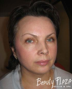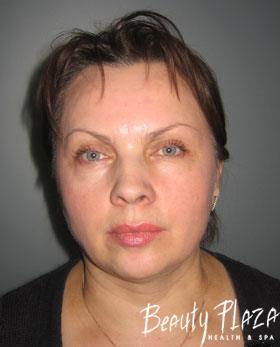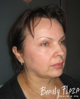 She came to us for her body shape correction but afterwards she decided to make changes in her face, too. With the course of years her subcutaneous fat tissue redistributed and led to visible defects of the face oval, leveling down of the mouth corners and development of the nasolabial folds.