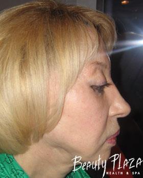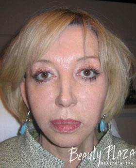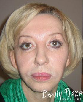 As we noted above the patient had very loose tissues. In order to strengthen them and decelerate the process of ageing as much as possible she underwent PROCOLLAGEN™ program and the Bank of her own fibroblasts was created. After the injection of fibroblasts her tissues started to produce the native collagen that’s characteristic of the youth. So we provided the biological youth of the very tissues for our patient and prolonged the obtained result for many years.