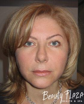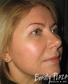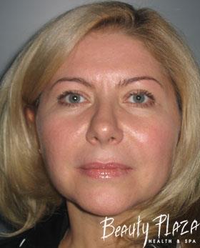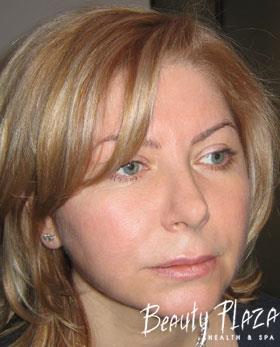 In this case we see the clear example of the fact that gel injected in the area of the nasolabial folds can make the face look puffy or, when getting firm, create the noticeable transition in the central part of the face. It is especially seen when photographed half profile.