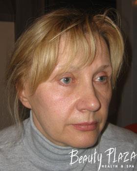 The program of nonsurgical age correction for this patient consisted of two procedures of internal lift SMAS® on the face and the neck with the applications of SmartLift® and SmartVolume® attachments. Thus we got the clear lines of the oval, beautiful neck, strengthened the subcutaneous fat tissue in the central and lower parts of the face. The patient initially was in a skeptical mood as she previously had undergone two procedures of one well-advertized technology and obtained no result. We are glad that we could prove something to her by our work – the system of internal lift SMAS® really works and outscores all the known methods Thermo – Age by many times!