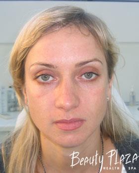 As a result we can see the completely different skin: no enlarged pores, capillaries, pigmentation spots and a strengthened oval of the face and highlighted cheekbones. The patient is completely satisfied!