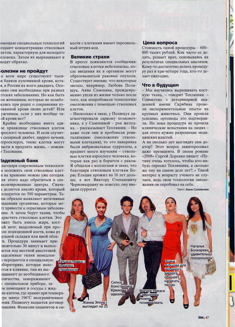 «Секреты российских и зарубежных звезд, неувядающая внешность и активное долголетие – о том, какие технологии лежат в основе этих тайн, рассказал «СтарХиту» пластический хирург, профессор Александр Тепляшин».