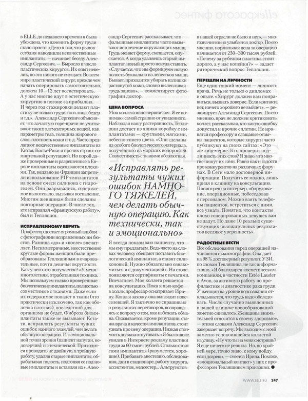 Более половины операций по пластике груди направлены на исправление результатов от предыдущих вмешательств. О том, как обезопасить себя от горе-хирургов и имплантов-убийц, редактор отдела красоты ELLE Мария Тараненко узнала у профессора Александра Тепляшина