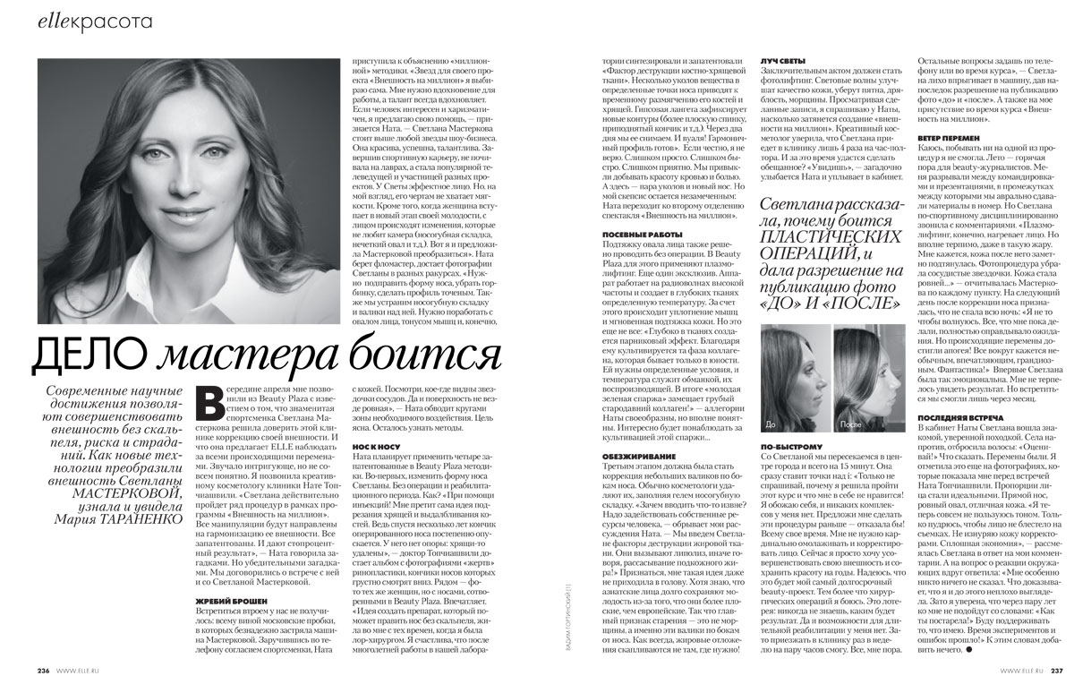 Современные научные достижения позволяют совершенствовать внешность без скальпеля, риска и страданий. Как новые технологии преобразили внешность Светланы МАСТЕРКОВОЙ, узнала и увидела редактор отдела красоты журнала ELLE Мария ТАРАНЕНКО.