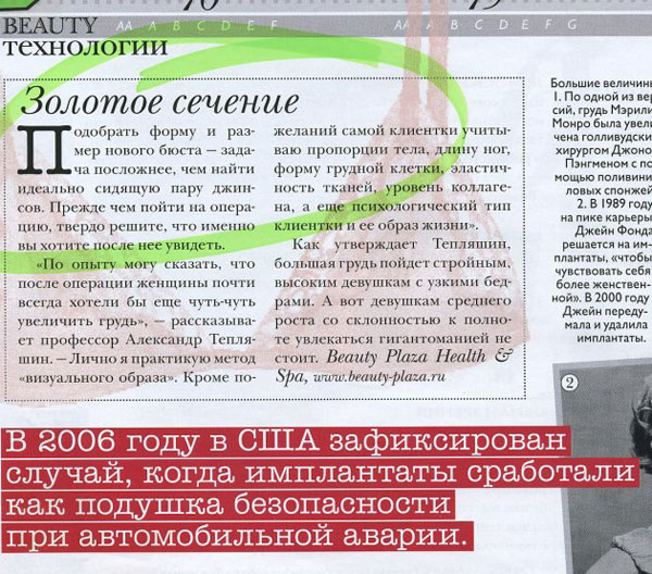 «Мнение эксперта», журнал «Красота и здоровье», ноябрь 2009