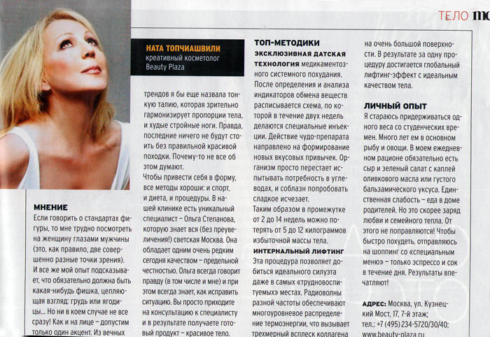 Креативный косметолог клиники Beauty Plaza Ната Топчиашвили о безоперационных методиках похудания, технологиях и личном опыте…