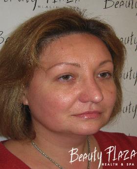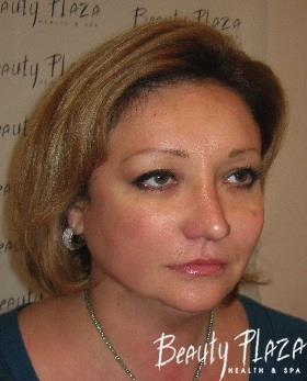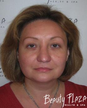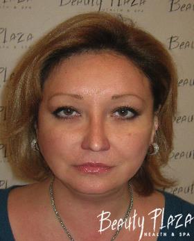 Проведено: 2 процедуры встречного Интернального лифтинга SMAS ® лица и шеи в сочетании с инъекциями, рассасывающими избыток подкожно-жировой клетчатки на лице, вобласти второго подбородка, безоперационная коррекция формы носа (безоперационная ринопластика).
