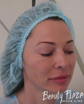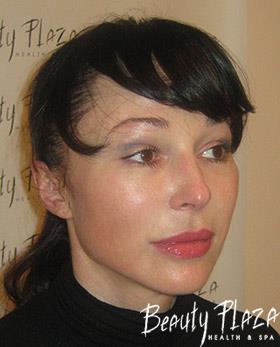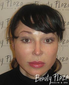 Проведено: эндоскопический лифтинг верхней и средней части лица с удалением грыж верхних век, которые образовались у пациентки после введения филлеров под видом фибробластов в московском медицинском центре "европейского класса", а также Фибролифтинг® - методика введения бионитей, обработанных собственными фибробластами. Следующим этапом корреции внешности стали две процедуры безоперационной коррекции длины и формы носа.