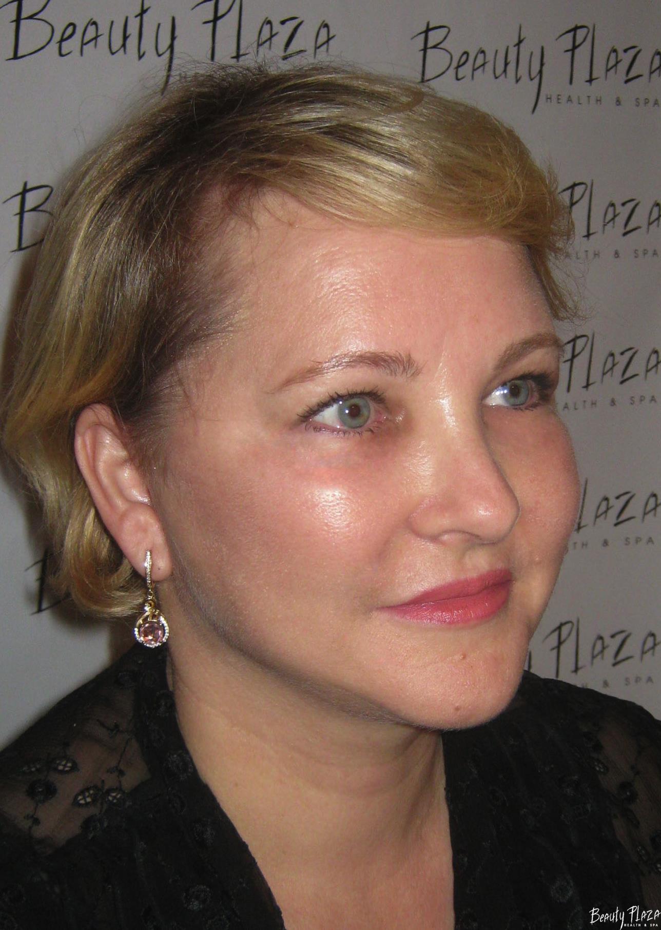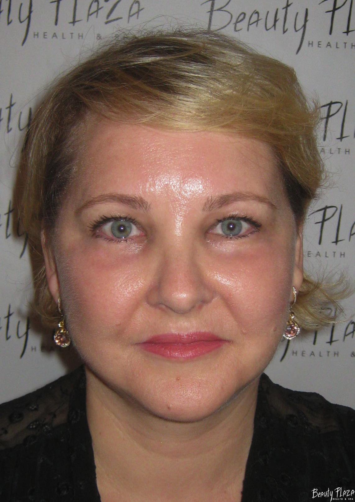 пластической хирургии проведено: шейно-щечная пластика с липосакцией области щек и второго подбородка, эндоскопический лифтинг лба, транконьюктивальная пластика нижних век с лазерным омоложением кожи нижних век.