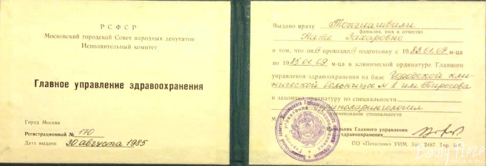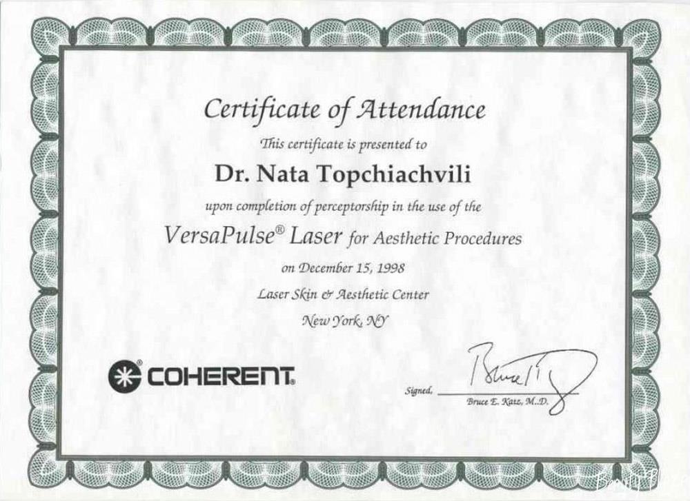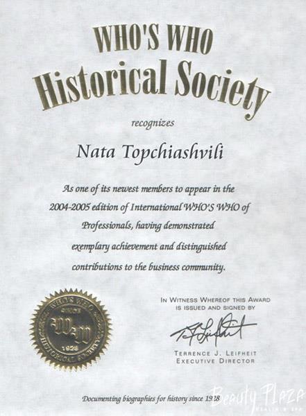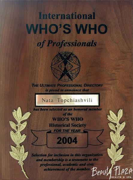 Among her patients are such celebrities as actresses Marina Zudina and Zhanna Epple, top model Karen Shonbachler, singer Anne Veske, Sergey Chelobanov, artist Nikas Safronov, Olympic champions Tatiana Navka and Svetlana Masterkova, world champion Iolanda Chen, members of State Duma, politicians and representatives of business elite. Diploma awarded specialist of American beauty school of New York. Mentioned in American encyclopedia WHO IS WHO, awarded with the highest European award – the Golden Arch of Europe for her competence and contribution in the development of aesthetic medicine.